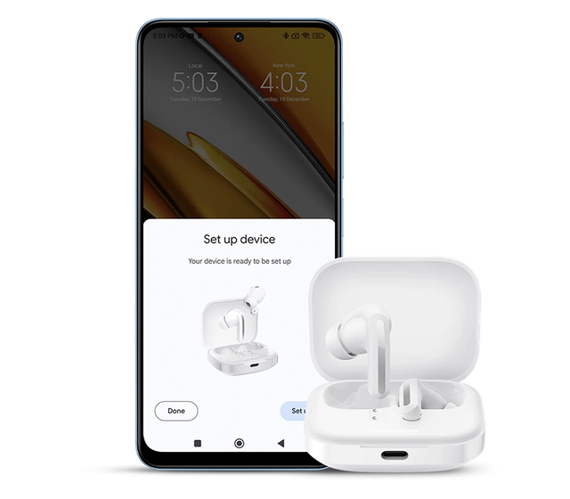 Дизайн навушників ретельно продуманий для створення ергономічної конструкції, зручної для тривалого носіння. Модель повторює форму вушного каналу, забезпечуючи максимально комфортну посадку без відчуття додаткового тертя й тиску. Завдяки розподілу ваги між внутрішньою та зовнішньою частиною 65 г проти 35 г, Redmi Buds 5 важчі всередині вуха, що забезпечує надійну фіксацію. Аудіодевайс можна використовувати під час активних занять спортом.