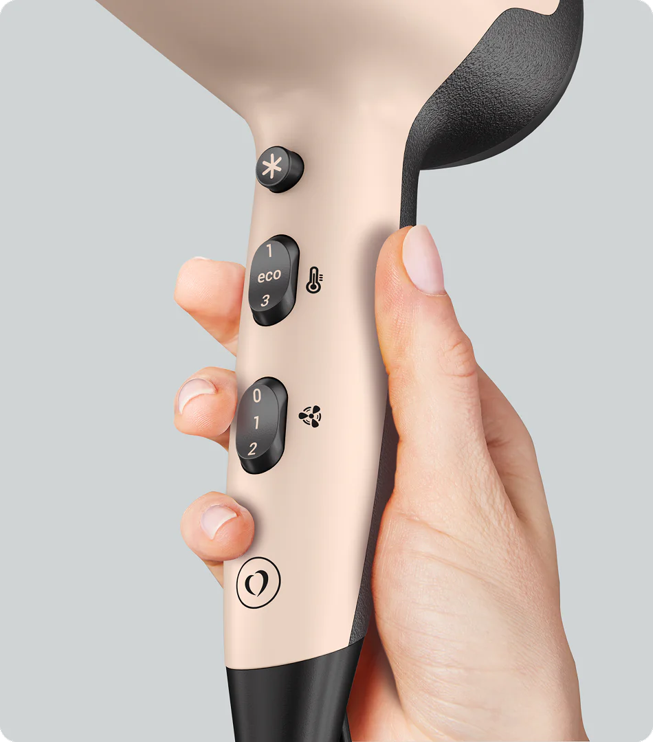 Розумний режим ECO змінює вашу б’юті-рутину: вбудований сенсор автоматично вмикає та вимикає фен, щойно ви берете його в руку або відкладаєте. За потреби цю функцію легко вимкнути та перейти до повного ручного керування. LED-підсвічування інформує про ввімкнення або вимкнення режиму ECO
