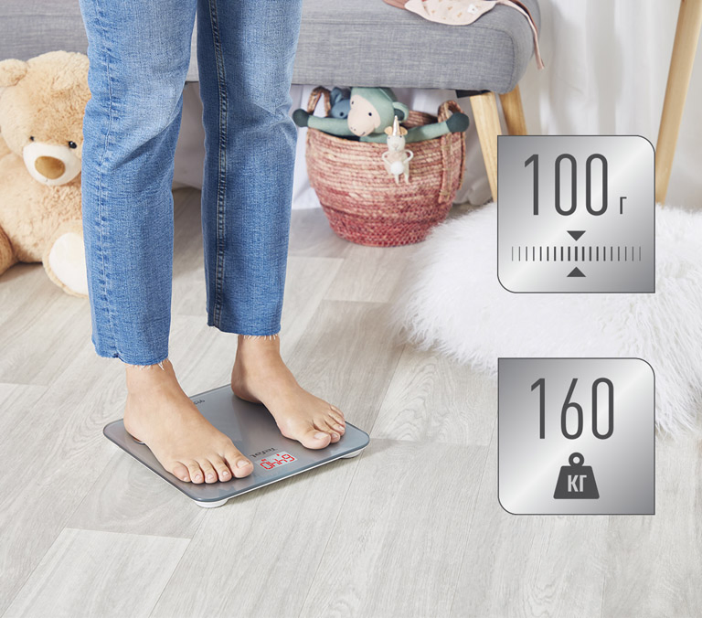 Розумні ваги Tefal GOODVIBES LIFE мають високий поріг чутливості в 100 грам. А це означає, що навіть з'їдений фрукт чи випита кава не залишаться непоміченими. Маючи обмеження за вагою 160 кг, ваги будуть корисні будь-якому члену сім'ї, від найменших до найбільших.