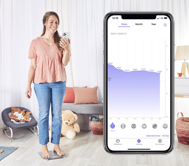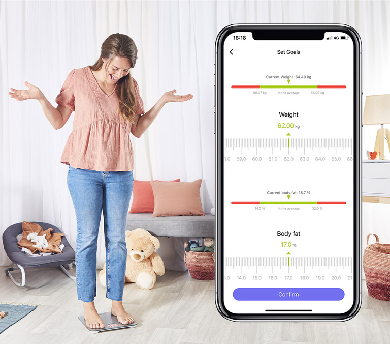В інтуїтивному мобільному додатку ви зможете легко візуалізувати свій прогрес за допомогою зручної та зрозумілої з першого погляду панелі індикаторів. Тепер після кожного зважування можна уточнити показники та проаналізувати зміни, що відбуваються з вашим тілом.