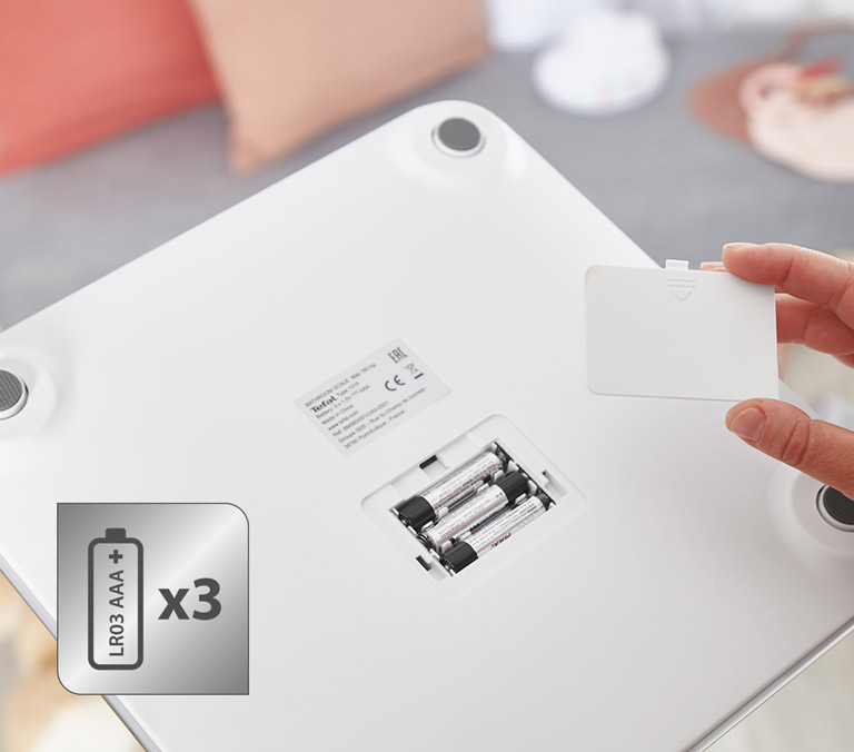 У комплекті з Tefal GOODVIBES LIFE йдуть три пальчикові батареї ААА. Тому відразу ж після покупки ви зможете почати користуватися вагами, для цього треба лише вставити батарейки у відсік.
