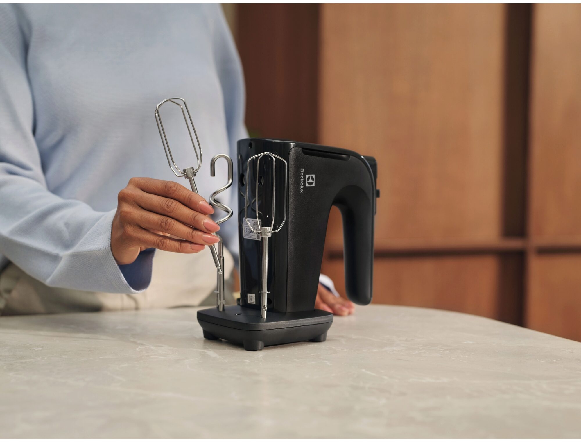 Завдяки ергономічній формі корпусу міксер зручно тримати навіть під час тривалого використання. Компактні розміри та невелика вага забезпечують легке зберігання, що робить ELECTROLUX EHM4B чудовим вибором як для домашніх кухонь, так і для активного щоденного використання.